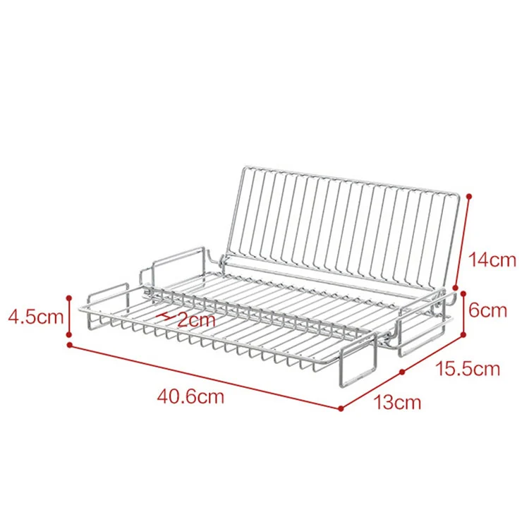 Ang kabuuang sukat ay 40.6 cm/15.98in, ang pangunahing taas ng katawan ay 6 cm/2.36in, ang taas ng vertical na gilid ay 14 cm/5.51in, ang lapad ng extension sa gilid ay 15.5 cm/6.1in, ang drainage gap ay 2 cm/0.78in. Ang disenyong ito ay angkop para sa karamihan ng mga lababo na may single-slot/double-slot ng sambahayan at tinitiyak na mabilis na dumadaloy ang tubig, na iniiwasan ang pag-iipon ng tubig.
